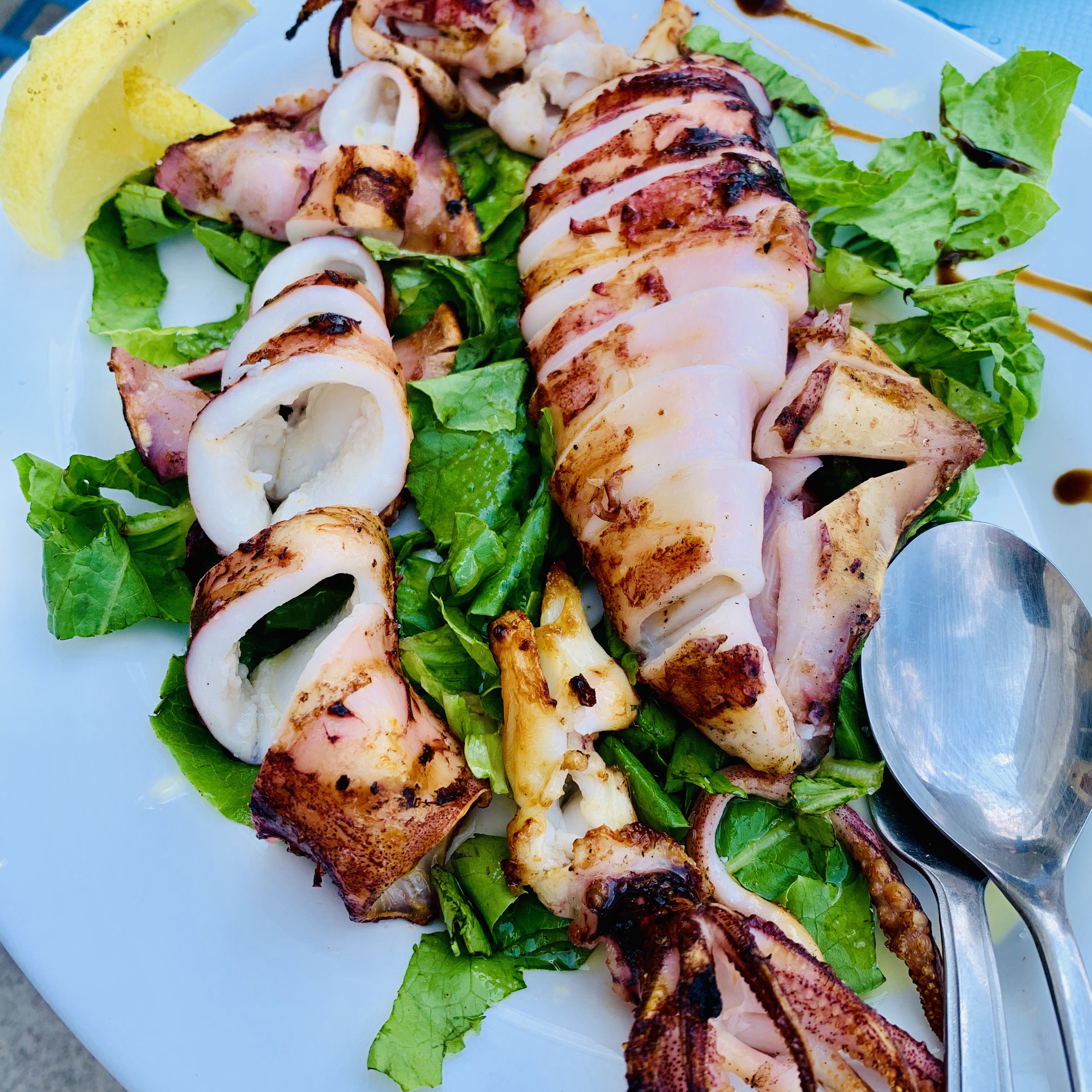 After some time in the sun and surf we retreated to the beach pub for a beverage and contemplated lunch. We opted to call the taxi and head back into town. On the drivers recommendation we settled in at one of the local spots next to the marina and enjoyed more squid and octopus.